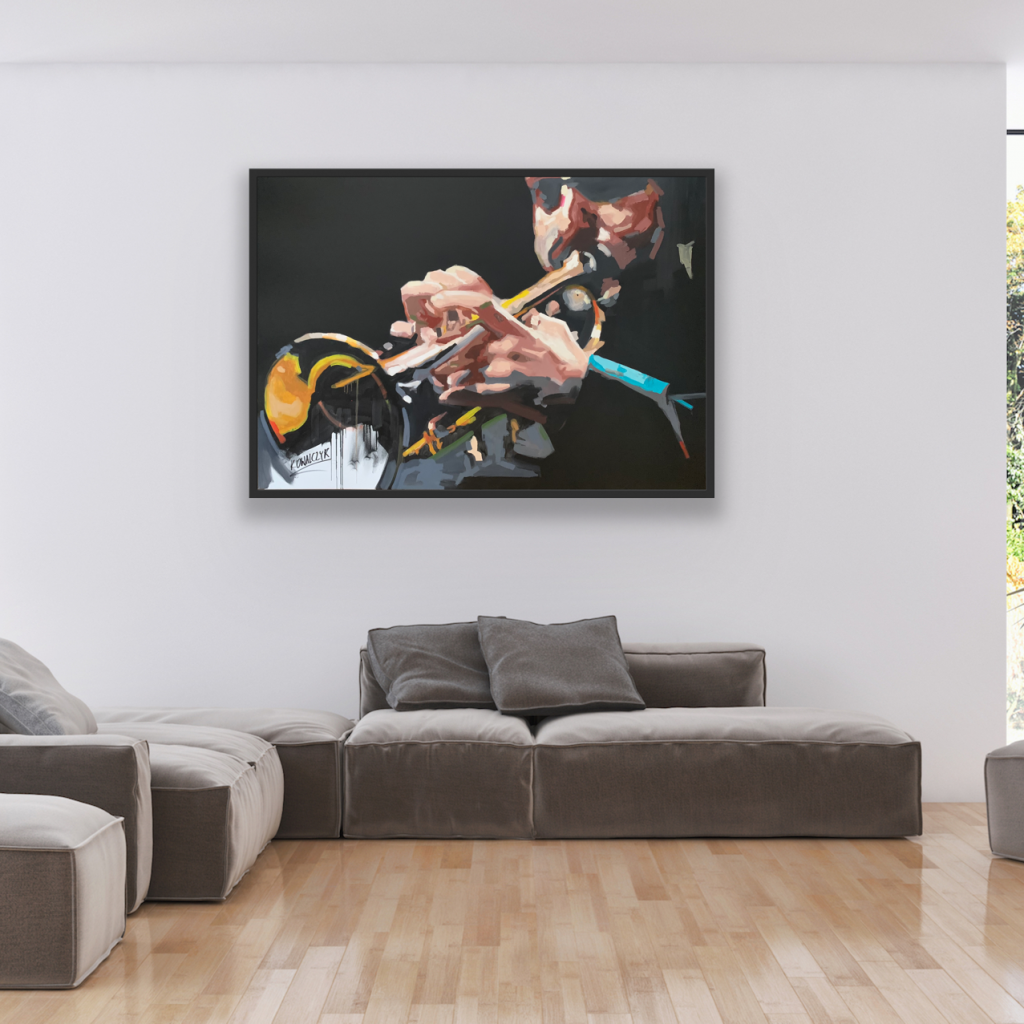 Ręcznie malowany olejny portret “Grajek” 100×140. Smooth jazz