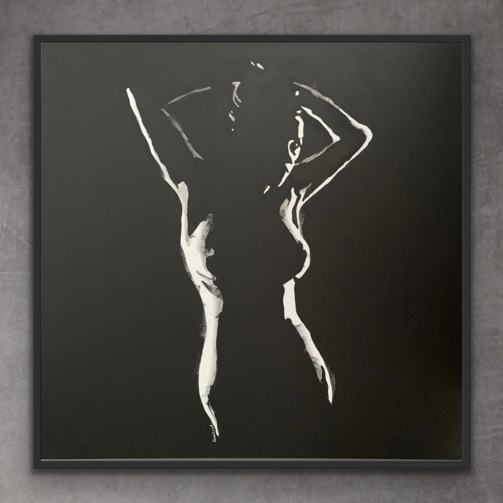 Obraz 100×100 “Act no 4”. Akt kobiecy, ręcznie malowany obraz metodą negatywu,