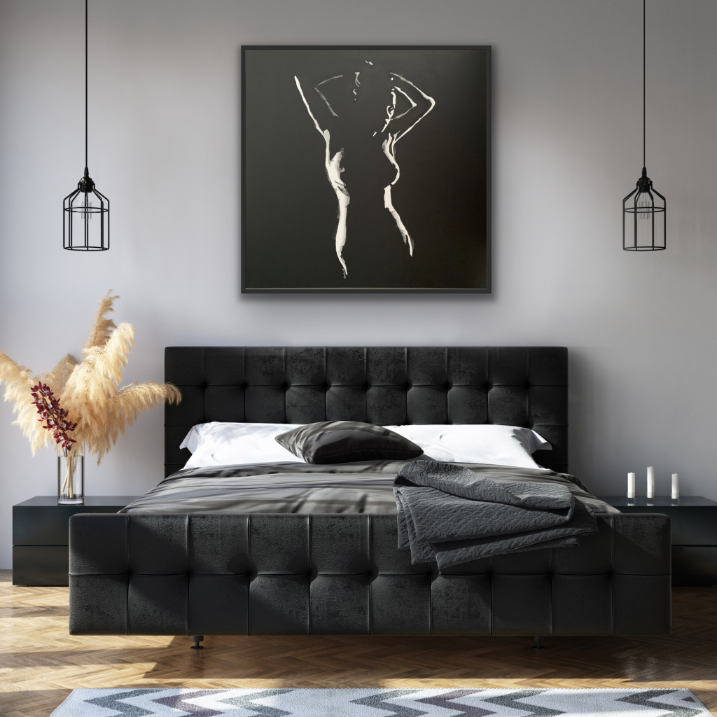 Akt kobiecy, ręcznie malowany metodą negatywu to jeden z serii aktów malowanych tą właśnie techniką. Doskonale sprawdzą się jako odważna dekoracja dla osób, które oddają hołd pięknu kobiecego ciała. Poprzez dość mocno zaznaczony kontrast na jaki zdecydował się artysta, oraz uniwersalne barwy, płótno bardzo dobrze będzie wyglądało zarówno w jasnych i minimalistycznych wnętrzach jak i już mocno udekorowanych. Pewnym jest, że “Act no 4” zachwyci swoją formą i przekazem jaki niewątpliwie niesie się z płótna.