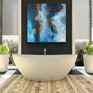 Ręcznie malowany, postarzany obraz “Gozo” zabierze Cię na spokojne wody Archipelagu Maltańskiego, pozwoli poczuć się zrelaksowanym i spokojnym. Nieustannie przebijające się pomiędzy sobą odcienie błękitu wraz ze spękaną, pozłacaną strukturą ucieszą nawet najbardziej wymagające gusta.