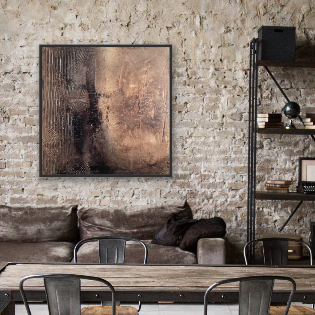 Ręcznie malowany obraz “Loft” pochodzi z kolekcji inspirowanej sztuką abstrakcyjną. W odróżnieniu od pozostałych z tej serii, ten przywołuje na myśl dawne czasy. Celowo użyta spękana struktura oraz beżowe, brązowe odcienie nadają mu powagi oraz prestiżu.