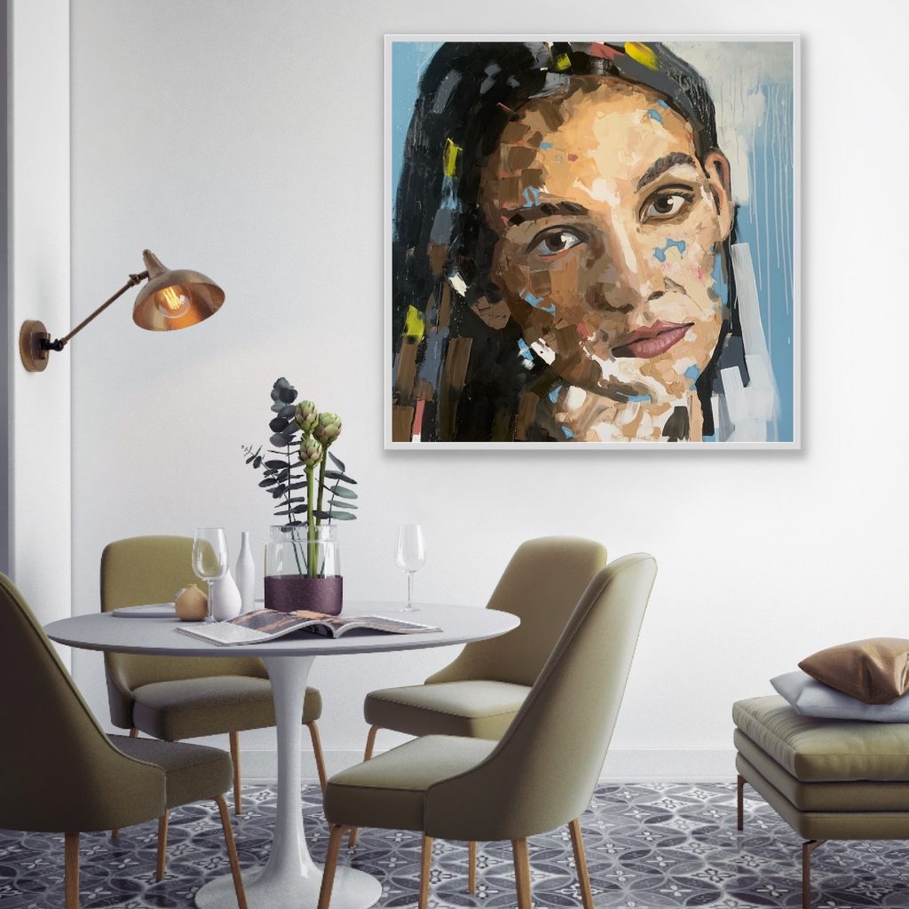 Ręcznie malowany, olejny obraz “Nel” 100×100 . Tajemnicza piękność