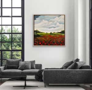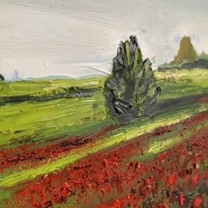 „POPPIES”, pejzaż, ręcznie malowany, olejny obraz. Certyfikat autentyczności