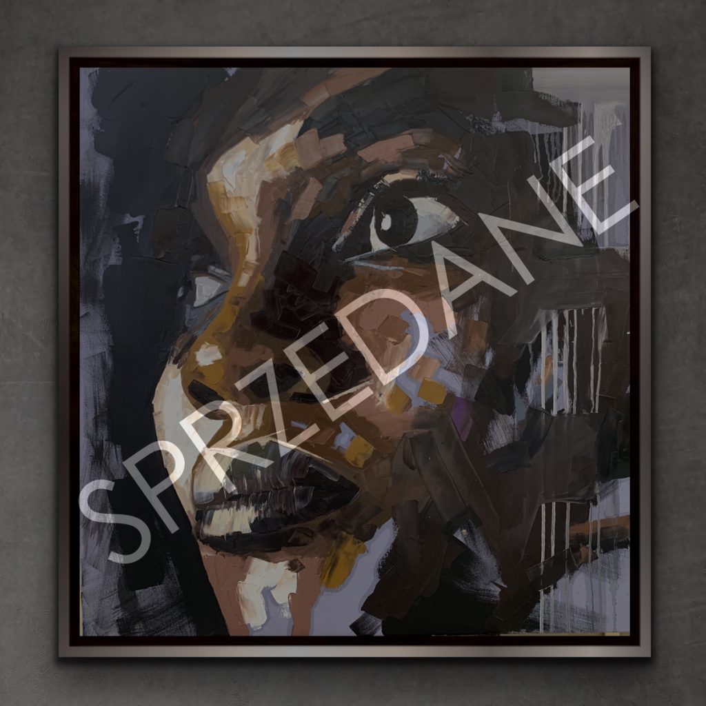 Obraz “Tacy Sami” to nietuzinkowy portret namalowany farbami olejnymi, przy którym nie sposób się nie zatrzymać na dłuższą chwilę. Obraz przedstawia czarnoskórą kobietę patrzącą w dal, jej przeszywający przestrzeń wzrok w połączeniu z tytułem obrazu wzbudza refleksję. Autor poprzez niepozorne pociągnięcia pędzlem stworzył idealnie zgrana całość, która zarówno forma jak i kolorystyką zachęca nawet bardzo wymagających widzów.