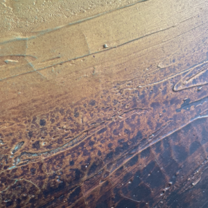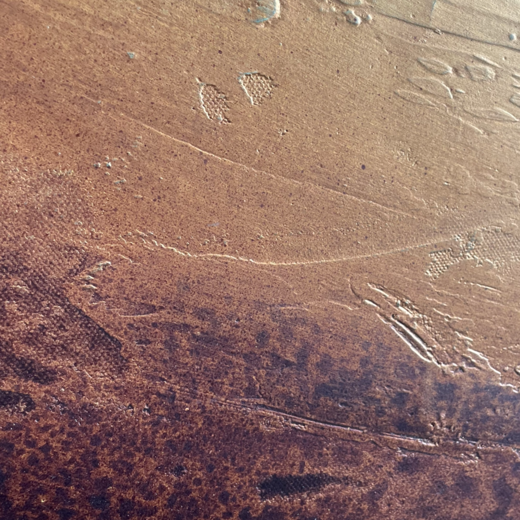 Kolory złota dominują na obrazie, nadając mu bogactwo i luksus. Refleksy złota migoczą na powierzchni łuku, co sprawia, że zdaje się on emanować światłem. Ręcznie malowane struktury dodają głębi i faktury, tworząc trójwymiarowy efekt, który zaprasza widza do głębszego zanurzenia się w dzieło.