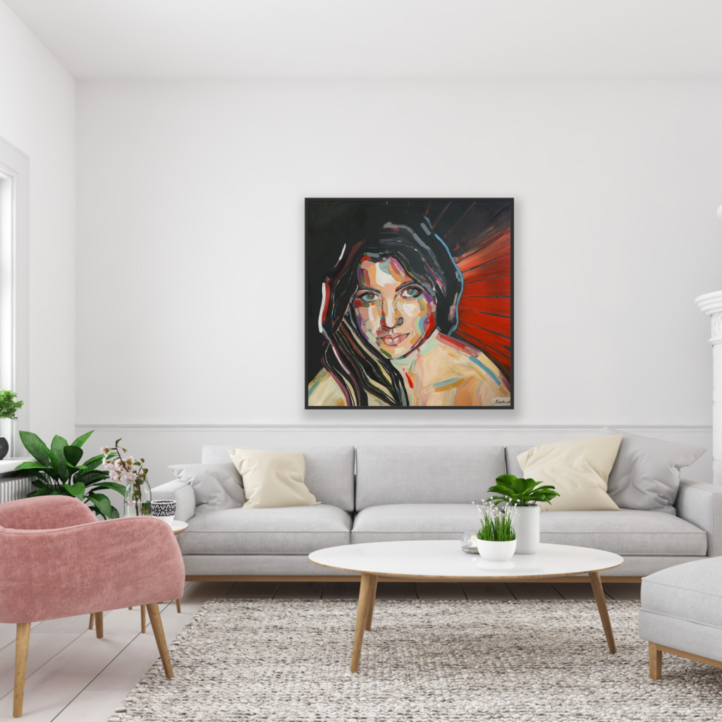Obraz “Black Screen” doskonale odnajdzie się we wnętrzach modernistycznych, nowoczesnych oraz bardziej klasycznych i przytulnych. Wszystko przez wyjątkowy charakter jaki oddaje ten ręcznie malowany obraz na płótnie. Portret zachęca aby spojrzeć mu “głęboko w oczy” i odgadnąć jego myśli. Jest to widok, który zdecydowanie uspokaja ale niesie ze sobą również pewnego rodzaju nieodgadniona tajemnica jaką zapewne miała kobieta pozująca do tego portretu olejnego. Obraz olejny “Black Screen” umieszczony w konkretnym pomieszczeniu nada jego wnętrzu niepowtarzalnego charakteru i na pewno zaintryguje gości.