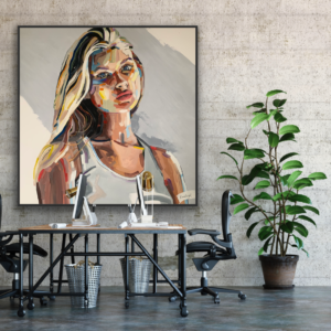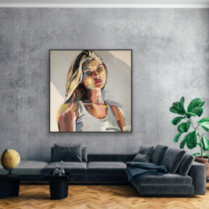 Niesamowicie dobrana kolorystyka wyróżni się na tle pozostałych dekoracji. Portret olejny “Tina ” jednocześnie zachwyca i intryguje. Barwne pociągnięcia pędzlem oraz cieniowanie na jakie zdecydował się autor doskonale wybija się na szarym tle.