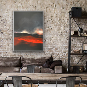 Obraz “VOLCANO” od razu pokazuje to, co artysta chciał przekazać. Piękno oraz siłę matki natury ujętą na jednym płótnie. Połączenie ciemnych barw oraz ciepłej czerwieni przywodzącej na myśl ognistą lawę robi piorunujące wrażenie.